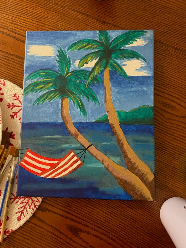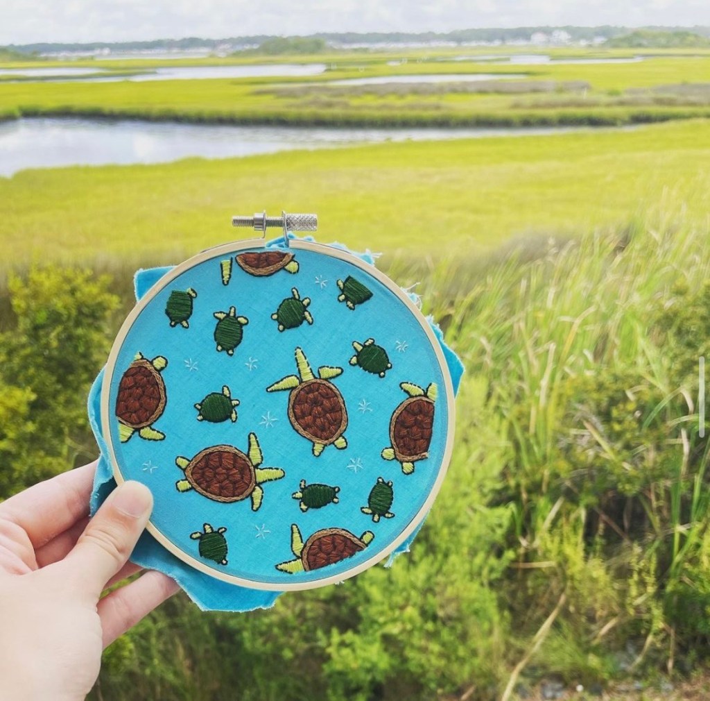 I don’t have an artistic bone in my body, but several of my classmates do and use art to relieve stress! My classmate, Shelby, finds painting to be very calming and therapeutic. She painted this beautiful ocean scene! Another classmate, Dynah, likes to do embroidery. How cute are her little turtles?!