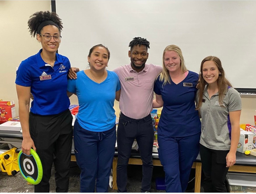 As part of our curriculum we take a health promotions class, which focuses on promoting healthy behaviors to help prevent the prevalence of non-communicable diseases. Physical therapists often have more one-on-one time with patients than other healthcare providers, which puts us in a great position to discuss health and wellness with our patients. A major part of this class was creating and/or executing a program in the community to promote a healthy behavior. For our project, my classmate and I partnered with a local pediatric clinic to create a Sport Skills Camp for children with functional impairments. Through this project, we aimed to help children explore different sports, become more confident, promote teamwork, and work on skills in a more real-world environment. Overall, we wanted to encourage physical activity and sports participation. The camp was once a week for 5 weeks, focusing on a different sport each week. Each day consisted of 30 minutes of stations to practice skills and 30 minutes of actual gameplay. The best words I can think of to describe this camp is controlled chaos. We had 8 kiddos with a wide range of abilities participate, and each week was so different. I never quite knew what to expect walking in, but everyone had a blast! Many of the kids had never played sports before, so it was awesome to see them trying new things and working as a team!