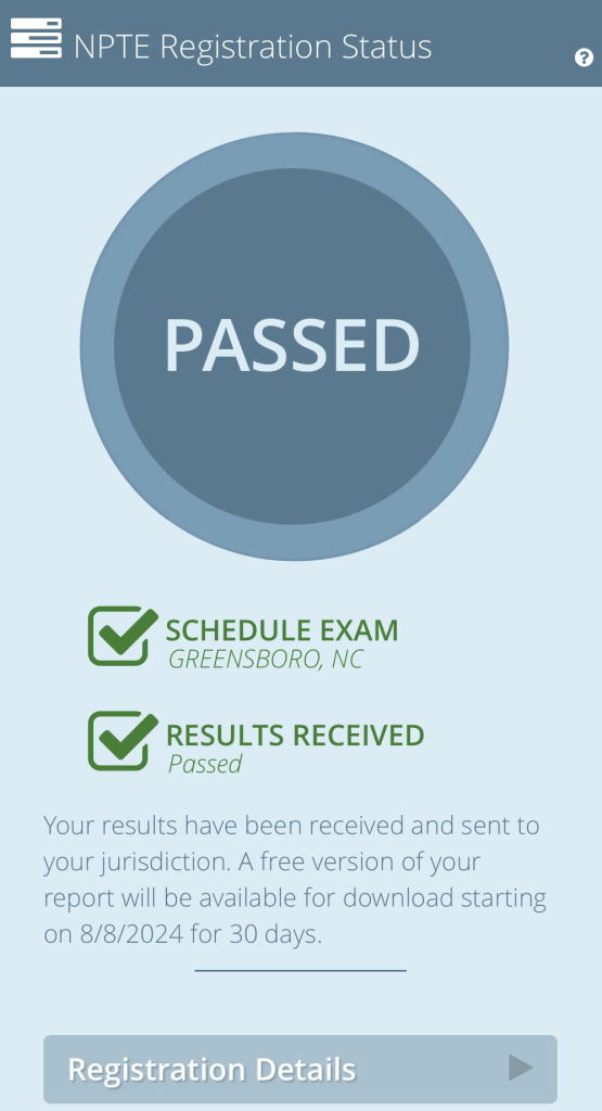 It was such a relief to walk across that stage in May and officially become a Doctor of Physical Therapy. However, I knew there would be one final step before it was fully official, and I could began my career. I had to take and pass the National Physical Therapy Exam (NPTE). The NPTE is a 5 hour, 225 question licensing exam which tests our knowledge on everything we learn in school (and more). The week between taking the exam and getting the results was one of the longest weeks of my life. I tried to keep my mind off of it by going out of town, hanging out with friends, working, and lots and lots of baking. Finally seeing that big green check signifying that I passed was a huge weight lifted off my shoulders!