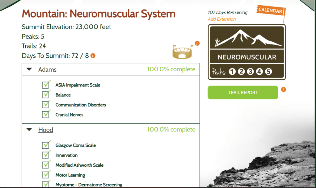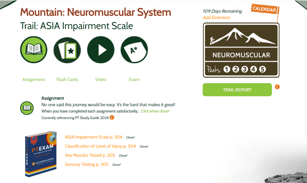 I was introduced to TrueLearn when a classmate shared about a free practice exam they were offering. I liked the way they worded their questions and explanations, so I decided to purchase a 30 day access to their question bank, which has about 1800 questions. This became my primary way of studying the final few weeks before the exam. They have a wide variety of questions, and I found the way they were worded comparable to the NPTE. They give very thorough explanations for all answer choices which I really liked. Each time I took them, I would read through the explanations and spend time reviewing any topics I didn’t understand or was consistently missing. They also have an app which made it easy to study when I didn’t have my computer.